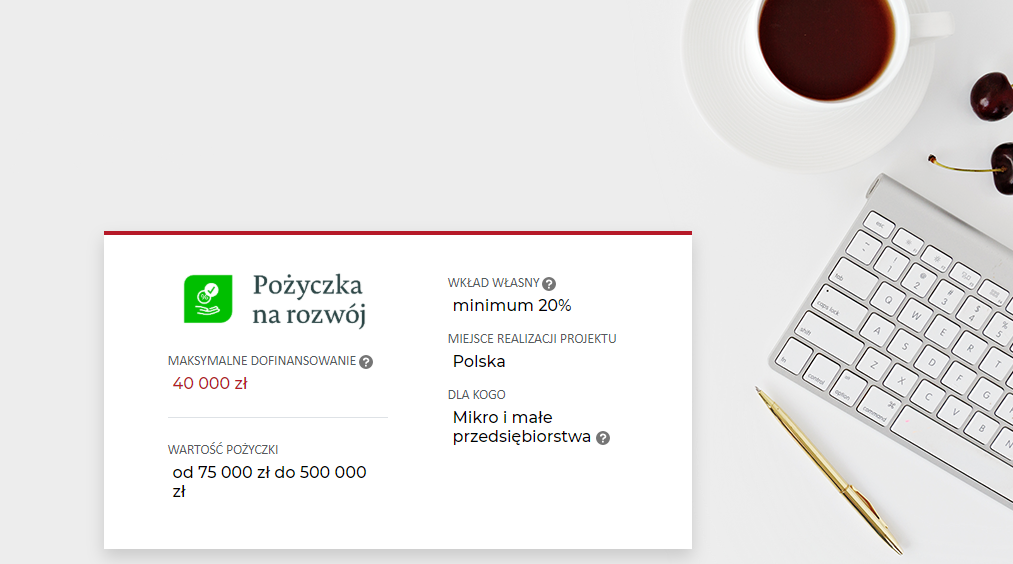 O pożyczkę mogą się starać przedsiębiorcy, którzy prowadzą działalność gospodarczą na terytorium Polski od co najmniej 2 lat.