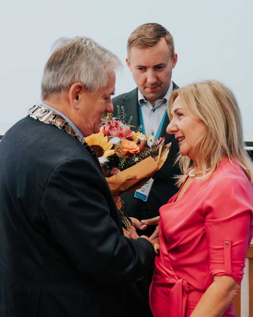 Burmistrz Roman Kużel oraz Przewodniczący Rady Miejskiej tak pożegnali i powitali obie Panie: