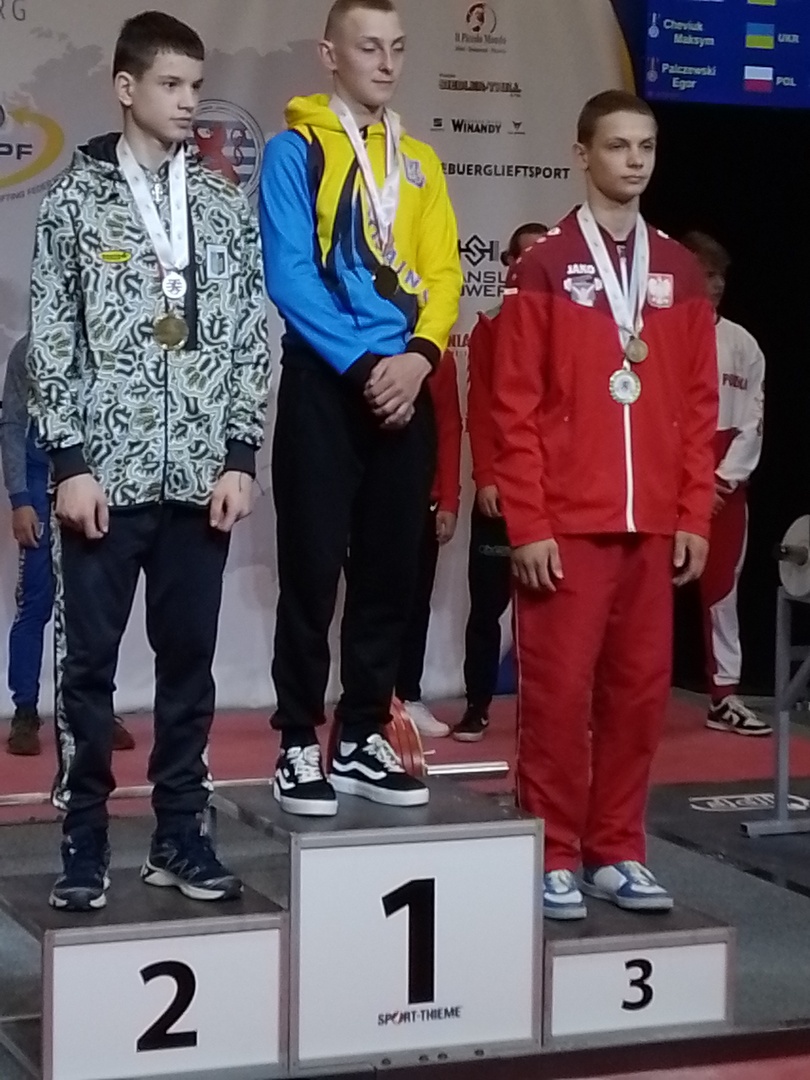 Kolejnym bardzo udanym startem zaprezentował się 16 letni Egor Palczewski, zdobywając w kat. do 53,0 kg w trójboju medal brązowy. Został też brązowym medalistą we wszystkich trzech bojach ustanawiając swoje rekordy życiowe. Zawodnicy PMKS Rybak, reprezentując barwy Polski, zostali też drużynowymi V-ce Mistrzami Europy. Zawodników do startu w Mistrzostwach Europy przygotował trener Augustyn Hadas. Podziękowania należą się też Pani Marlenie Link - prezes Klubu, która znakomicie wywiązała się z przygotowania organizacyjnego do Mistrzostw Europy.