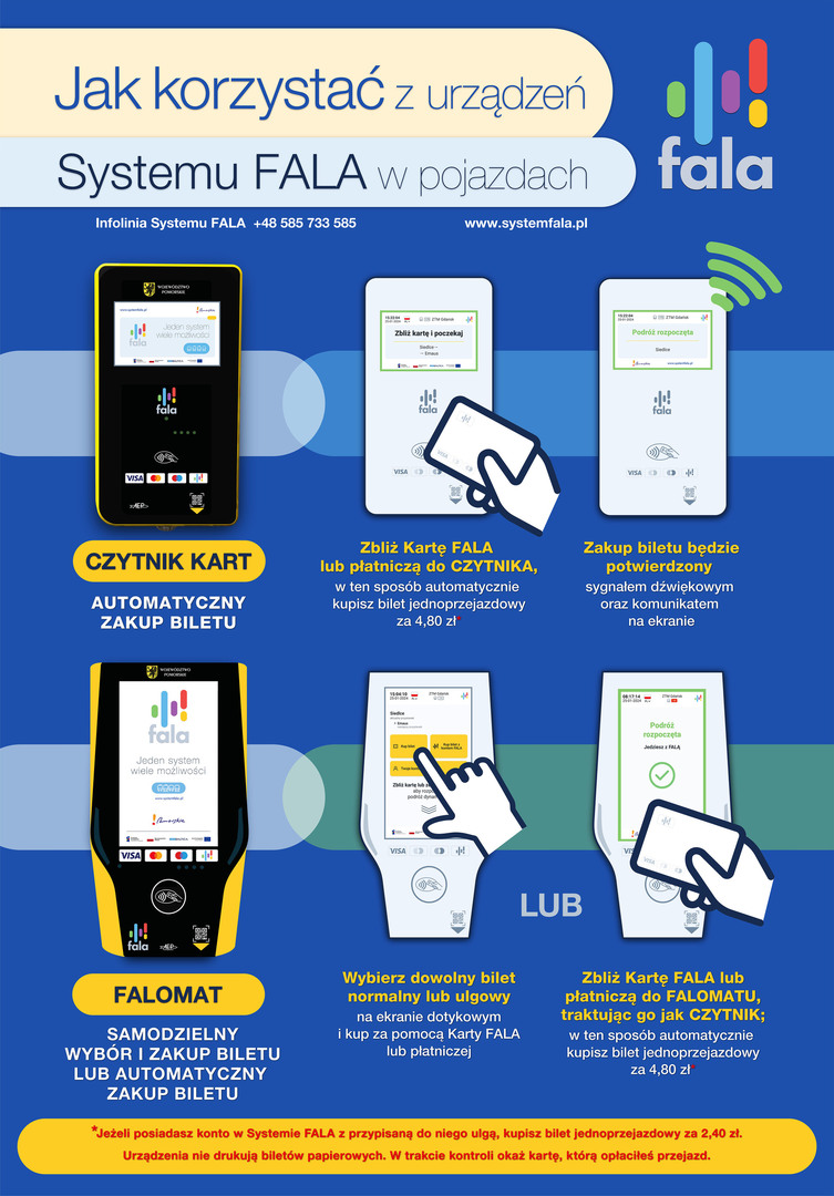- W przypadku gości w naszym regionie skupiamy się na zachęcaniu pasażerów przede wszystkim do kupowania biletów elektronicznych z FALĄ płacąc kartą płatniczą w komunikacji miejskiej – mówi rzecznik. Aktualnie wykonawca Systemu FALA – Asseco Data Systems – wraz z InnoBaltiką jest w cyklu testów wewnętrznych oraz intensywnych przygotowań do uruchomienia kilkuetapowych testów publicznych w ramach połączeń kolejowych Polregio oraz SKM Trójmiasto.