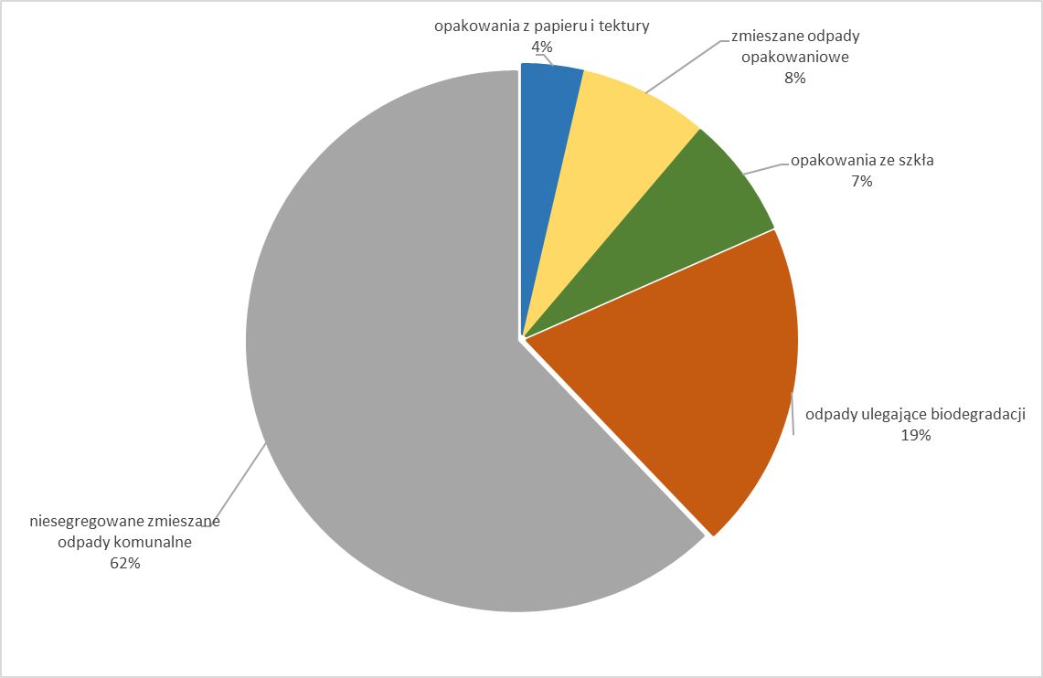 Procent poszczególnych frakcji odpadów komunalnych odebranych z nieruchomości zamieszkałych z terenu Gminy Władysławowo w ciągu ostatnich 12 miesięcy: