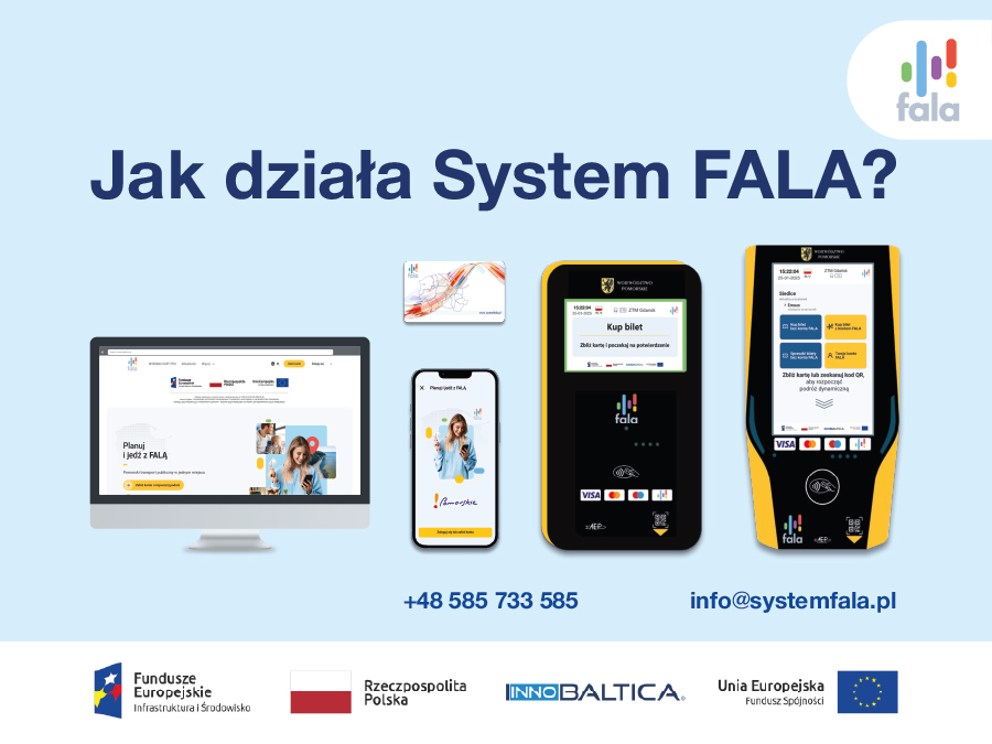 System FALA jest narzędziem do planowania podróży oraz płacenia za przejazdy w transporcie publicznym na terenie województwa pomorskiego.
