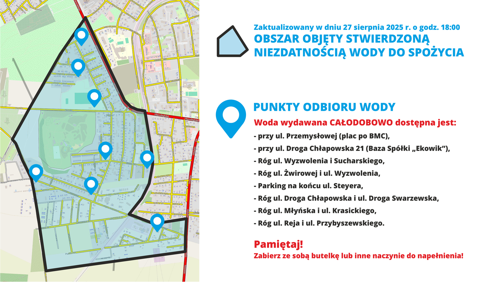 Aktualizacja dotycząca doprecyzowania nazw ulic w obszarze objętym stwierdzoną niezdatnością wody do spożycia