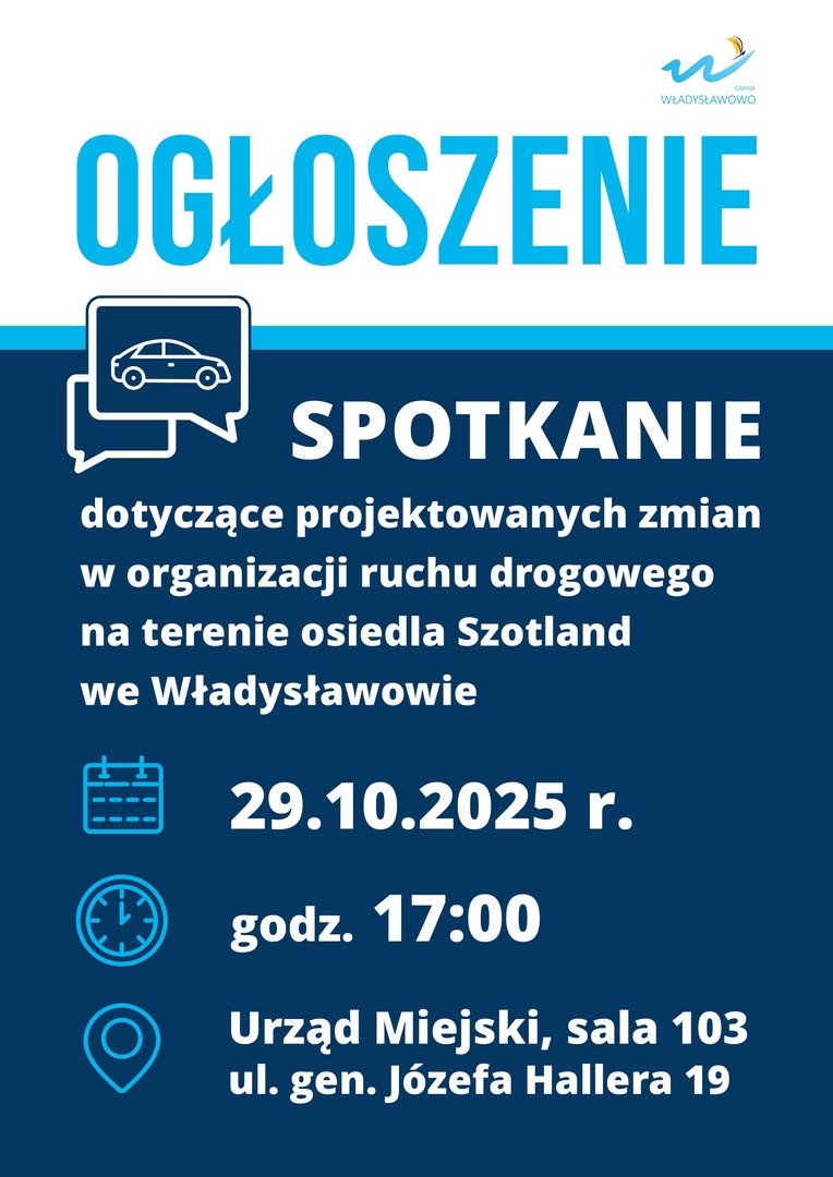 Serdecznie zapraszamy Mieszkańców Osiedla Szotland na spotkanie dotyczące projektowanych zmian w organizacji ruchu drogowego na terenie osiedla.