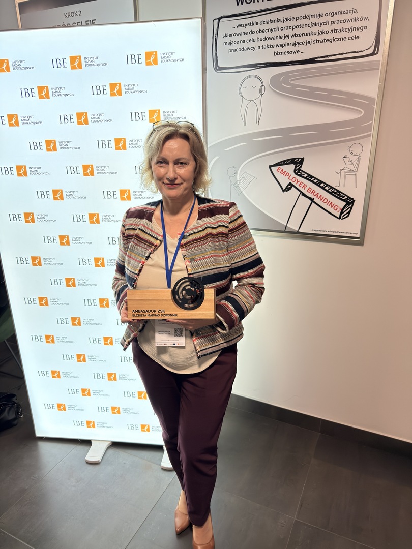 Za swoje zaangażowanie i wkład w rozwój systemu kwalifikacji, pani Elżbieta Margas-Dzwonnik została wyróżniona tytułem Ambasadora ZSK. To prestiżowe wyróżnienie jest nie tylko osobistym sukcesem pani Elżbiety, lecz także powodem do dumy dla całej naszej gminy. Potwierdza ono, że kształcenie zawodowe we Władysławowie rozwija się zgodnie z najwyższymi standardami i stanowi wzór dla innych szkół.