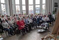 Program rozpoczął się prezentacją poezji i prozy regionalisty Jana Drzeżdżona, a następnie uczestnicy obejrzeli film „Testament” w reżyserii Andrzeja Sipajło. W roli głównej wystąpił Józef Roszman, który po projekcji podzielił się historiami z planu i opowiedział o kulisach powstawania filmu. Seniorzy z Władysławowa i Pucka byli pod dużym wrażeniem regionalnego wystroju sali, który wprowadzał w kaszubski klimat. Nie zabrakło również lokalnych przysmaków: chleba ze smalcem i ogórkiem kiszonym, ziemniaków w mundurkach – pùlków – z sałatką śledziową oraz tradycyjnej drożdżówki. Przy akompaniamencie akordeonu śpiewano znane kaszubskie pieśni, tworząc ciepłą, serdeczną atmosferę. Spotkanie stało się piękną okazją do wspólnego celebrowania kultury i tradycji naszego regionu.