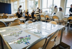 W poniedziałek, 8 grudnia 2025 roku uczniowie klas ósmych Szkoły Podstawowej im. Stefana Żeromskiego w Jastrzębiej Górze wzięli udział w warsztatach artystycznych organizowanych przez Kaszubskie Kółko Gospodyń Wiejskich Jastrzębianki. Młodzież malowała wzory kaszubskie na szkle.