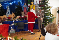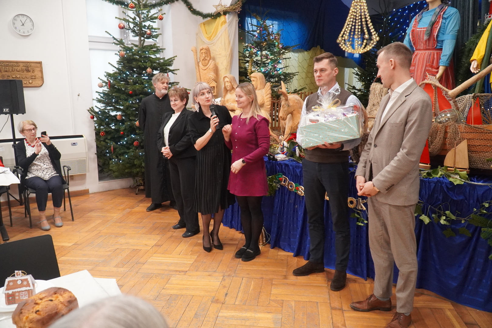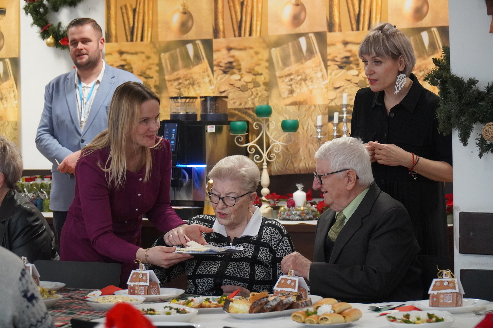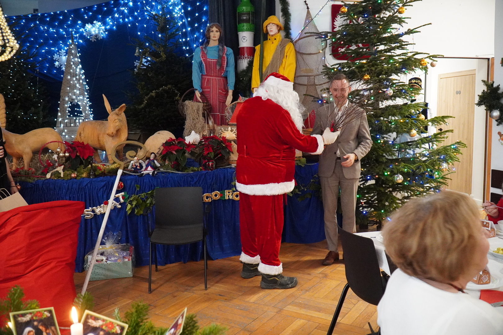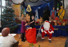 Salę 103 wypełnił zapach świątecznych specjałów m.in. barszczu, grzybowej i świątecznych ciast. Wszystkich przybyłych powitał Burmistrz Władysławowa Roman Kużel oraz Zastępca Burmistrza Kamil Pach. Wiele radości sprawiła wszystkim wizyta i prezenty od św. Mikołaja. Następnie przyszedł czas na składanie życzeń przy opłatku, ucztowanie, rozmowy i żywe śpiewanie najpiękniejszych polskich kolęd.