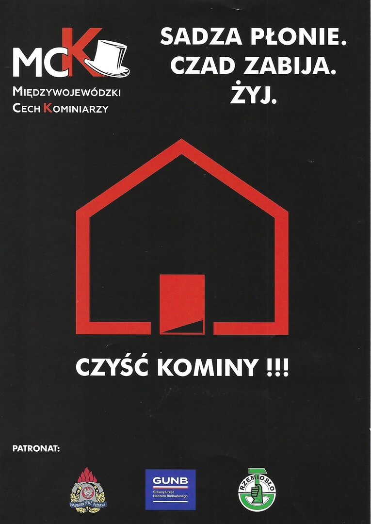 Międzywojewódzki Cech Kominiarzy informuje o kampanii społecznej "SADZA PŁONIE! CZAS ZABIJA! ŻYJ!", której celem jest eliminacja niebezpieczeństw związanych ze smogiem, zaczadzeniami i pożarami, których główną przyczyną są źle eksploatowane lub zaniedbane przewody kominowe i urządzenia grzewcze.