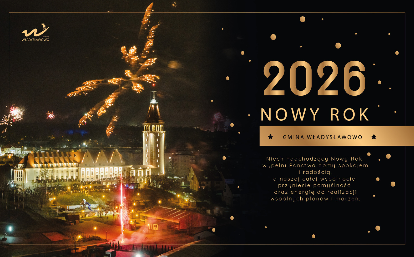 niech nadchodzący Nowy Rok wypełni Wasze domy spokojem, radością i poczuciem bezpieczeństwa. Życzymy zdrowia, wzajemnej życzliwości oraz satysfakcji z codziennych działań. Niech będzie to czas pomyślności, dobrej współpracy i energii do realizacji wspólnych planów oraz marzeń, które umacniają naszą lokalną wspólnotę i sprawiają, że Władysławowo pozostaje dobrym miejscem do życia.