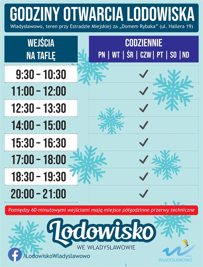 W artykule publikujemy harmonogram obowiązujący aż do zakończenia tegorocznego sezonu łyżwiarskiego, czyli aż do niedzieli, 1 marca 2026 r.