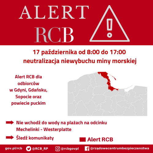 Alert RCB - neutralizacja niewybuchu miny morskiej w Zatoce Gdańskiej (17/10)