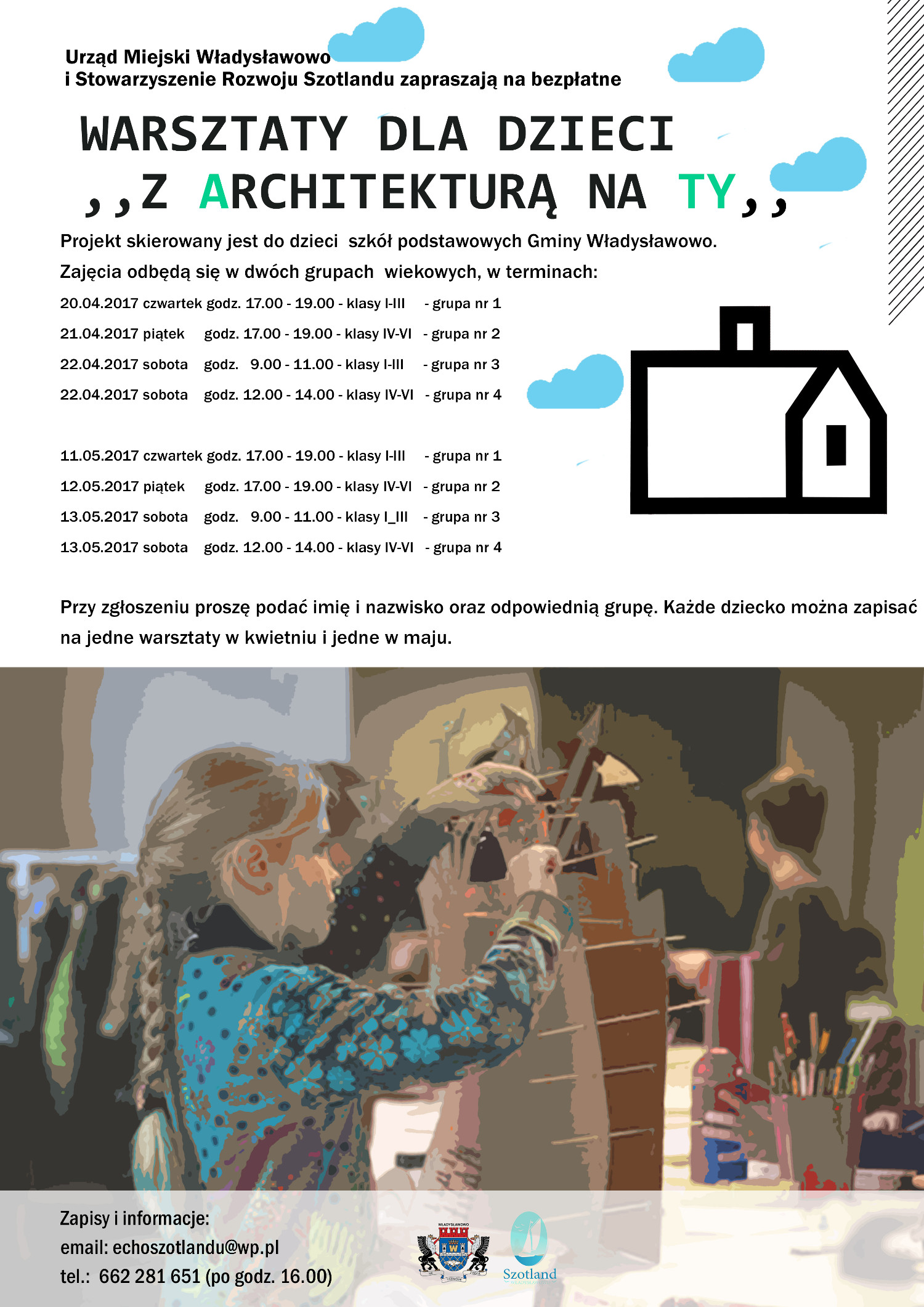 Urząd Miejski we Władysławowie i Stowarzyszenie Rozwoju Szotlandu zapraszają na kolejną edycję bezpłatnych warsztatów dla dzieci ze szkół podstawowych Gminy Władysławowo pt. „Z architekturą na ty”.