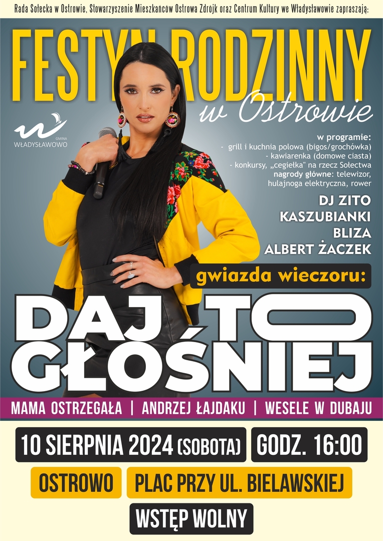 Rada Sołecka w Ostrowie, Stowarzyszenie Mieszkańców Ostrowa ZDRÓJK oraz Centrum Kultury we Władysławowie zapraszają na Festyn Rodzinny i koncert Daj To Głośniej.