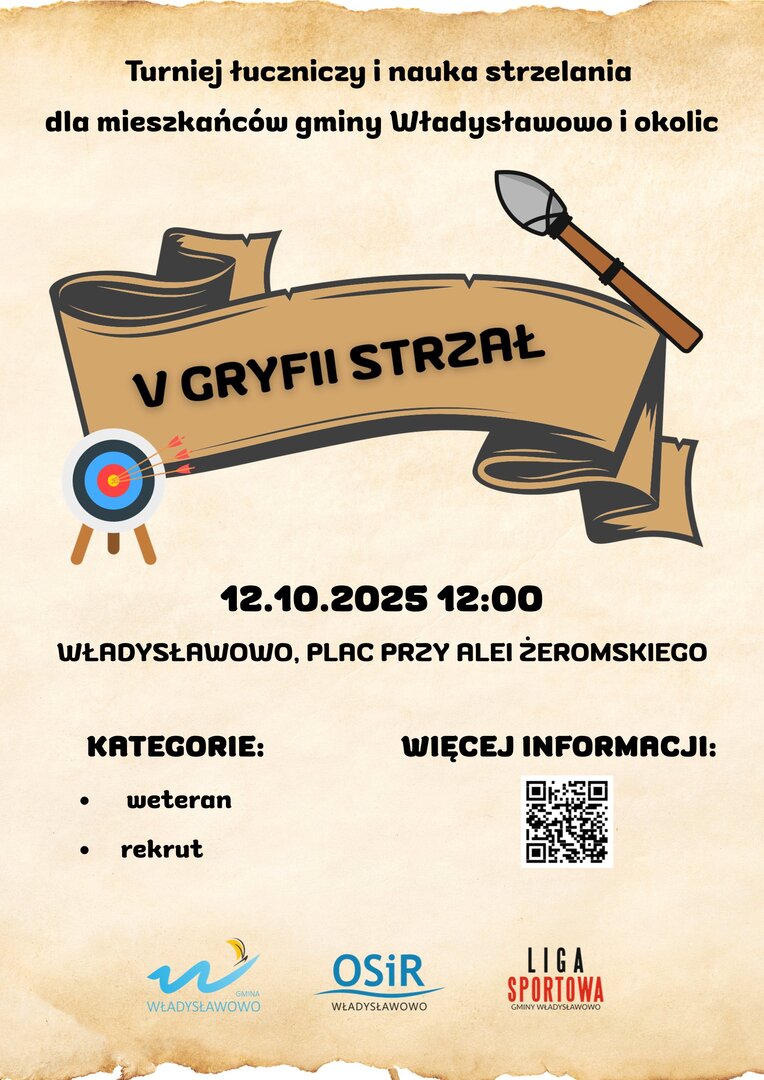 Turniej łuczniczy i nauka strzelania dla mieszkańców gminy Władysławowo i okolic, ze szczególnym uwzględnieniem uczestników Ligii Sportowej Gminy Władysławowo obejmuje: