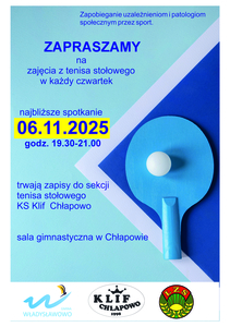 Trwają zapisy do sekcji tenisa stołowego KS Klif Chłapowo.