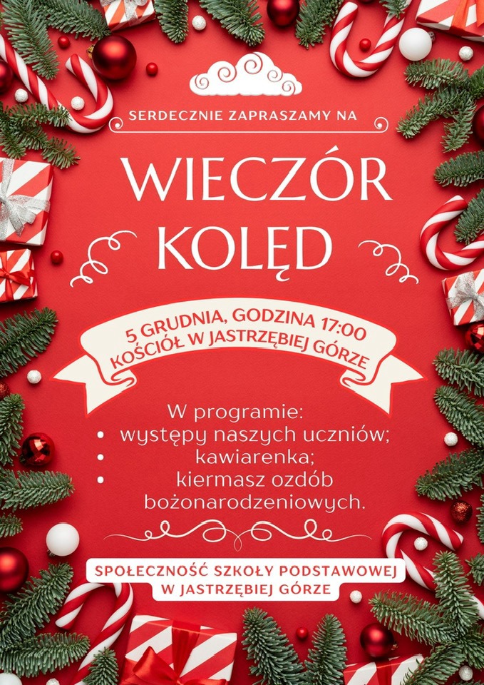 Szkoła Podstawowa w Jastrzębiej Górze oraz Parafia Jastrzębia Góra zapraszają na wieczór kolęd.