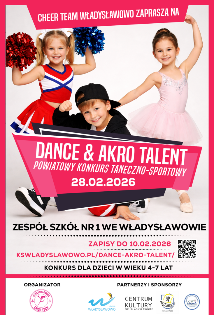 Regulamin i formularz zgłoszeniowy: https://kswladyslawowo.pl/dance-akro-talent/